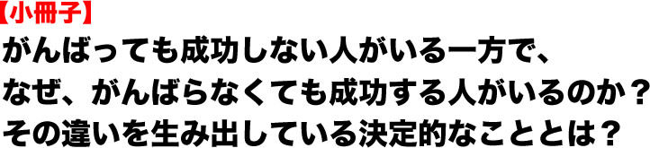 もしあなたが、いくらがんばっても成功できない、いくら「成功」や「目標達成」や「自己啓発」を学んでも、その通りにプラス思考で行動できないなら、この小冊子はあなたのために書かれたものだと断言できます。