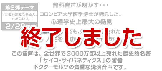 この音声は、今後販売する予定はありません。モルツ博士の貴重な講演を聞けるのは、二度とないかもしれません。