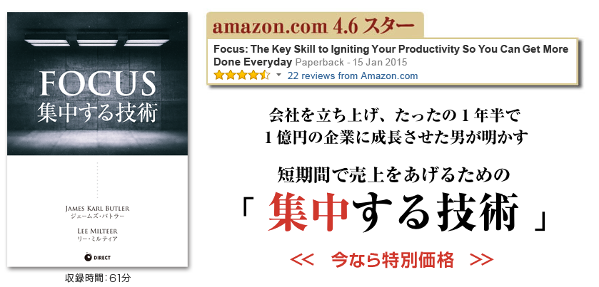 そして、この「集中する技術」は一度身につけたら、何度でも使えるので、あなたのこれからのビジネスに大きなリターンをもたらしてくれるのです、、、