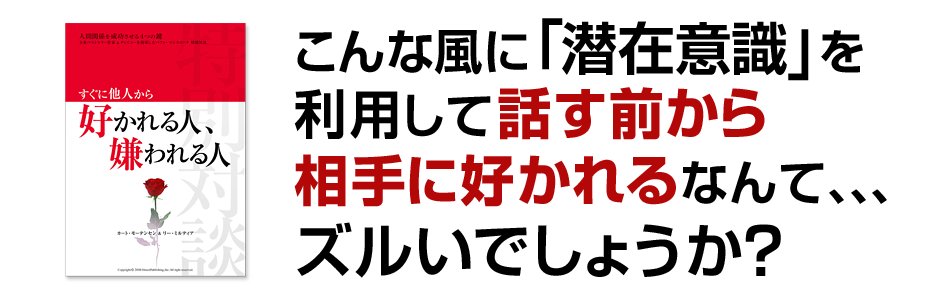 なぜなら、話すこともせず一瞬で相手の懐に飛び込み、相手の好意を引き寄せ、本来なら長い年月がかかるはずの相手との信頼関係を、極めて短時間で築くことができる方法だからです(それがたとえ「100人を超えるような場合」であったとしても!)。