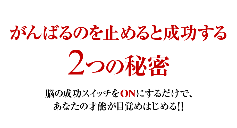 実は、私たちは元々、成功を追い求めるようなプログラムを脳の中に持っていて、それを正しく使えば、一生懸命、必死にがんばらなくても、脳が自動的に成功を追い求めてくれる・・・という事です。